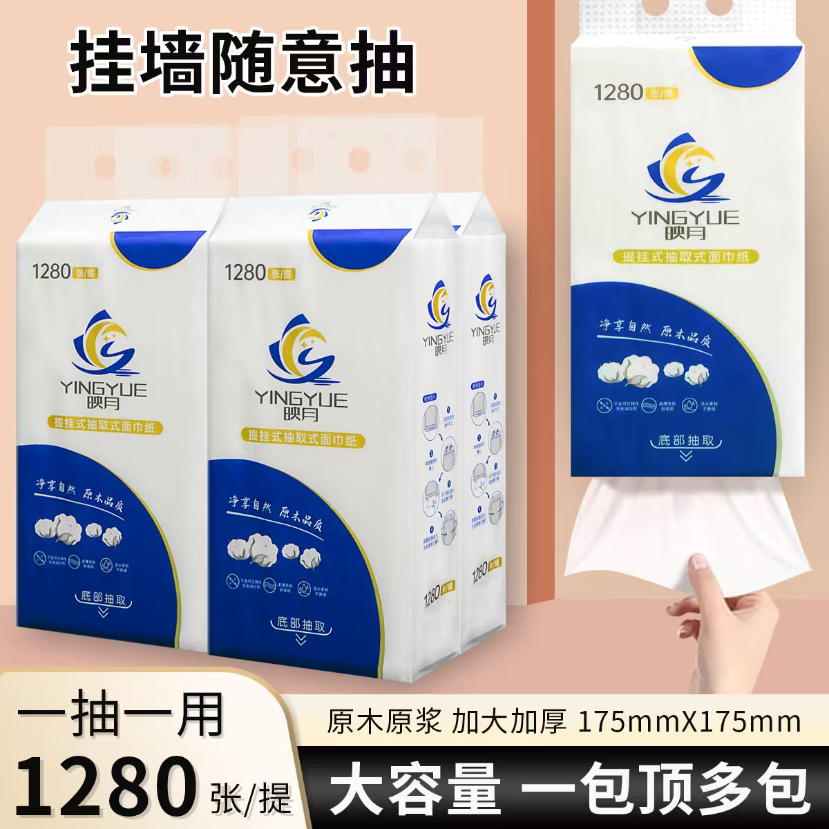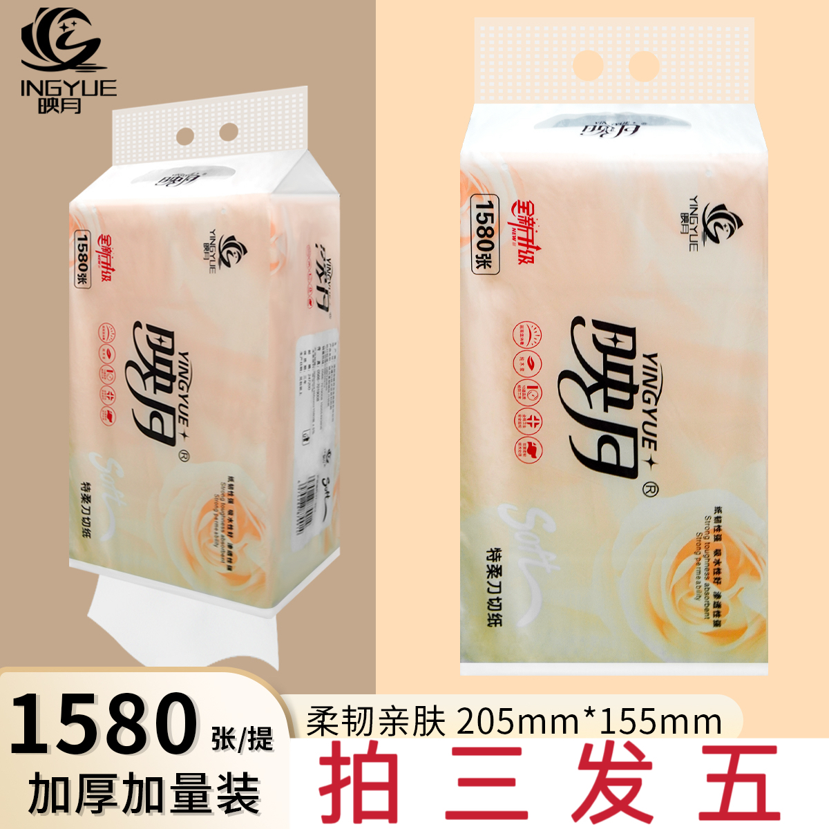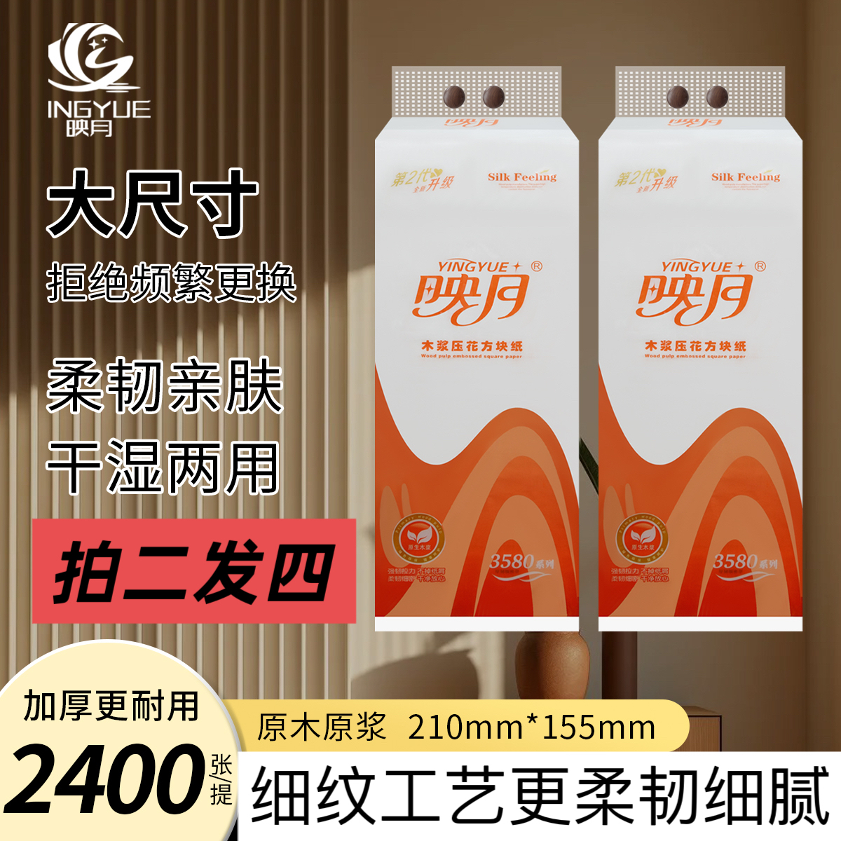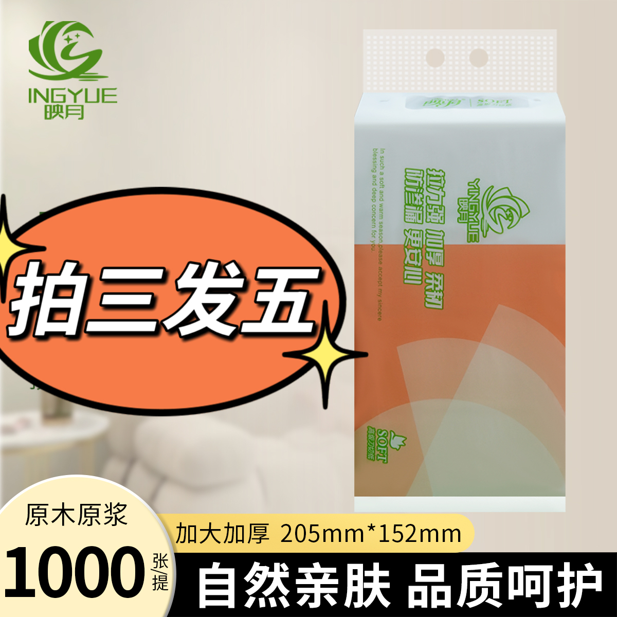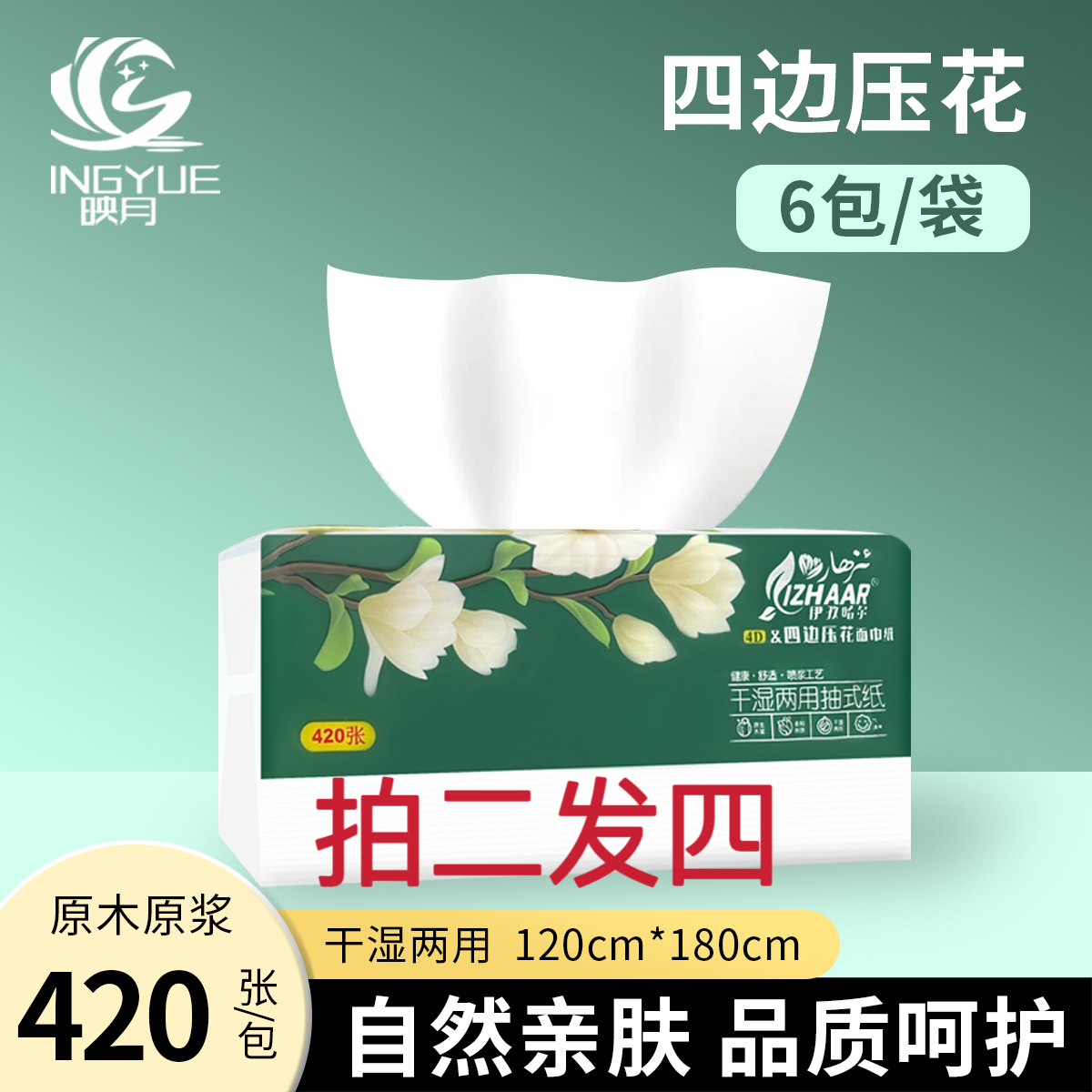拍二发四 2提映月3580系列货号A1-001 送2包K3系列压花抽纸