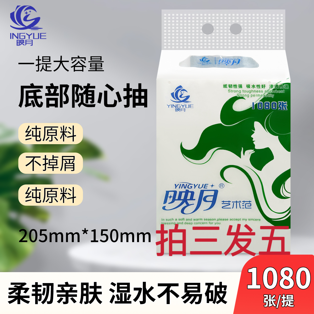 拍三发五 3提映月平板底部抽编号YY-9846 送2包泛柔绿色便携湿巾编号FR25220