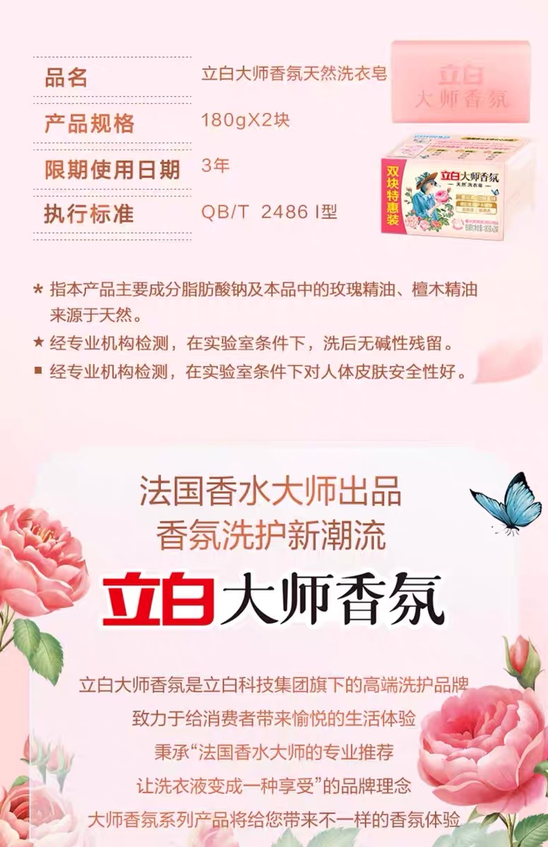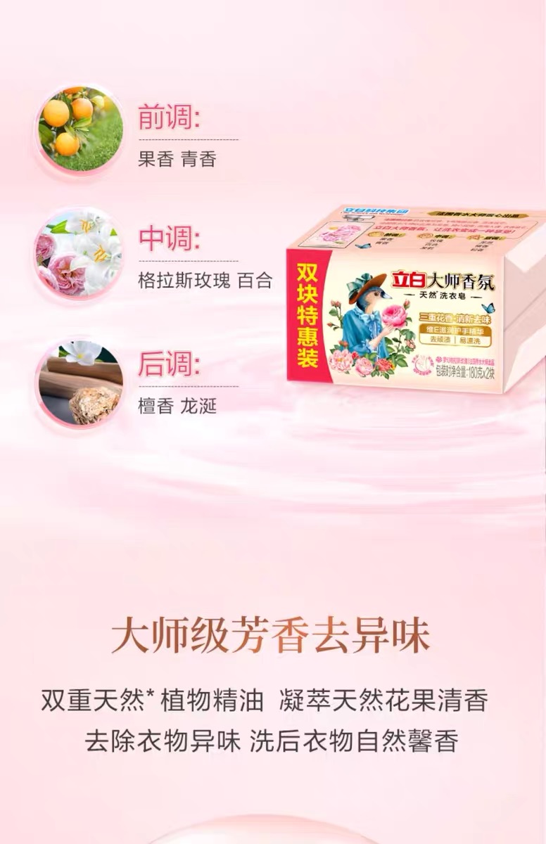 立白大师香氛天然洗衣肥皂持久留香祛味顽渍护衣易漂洗家用1块装