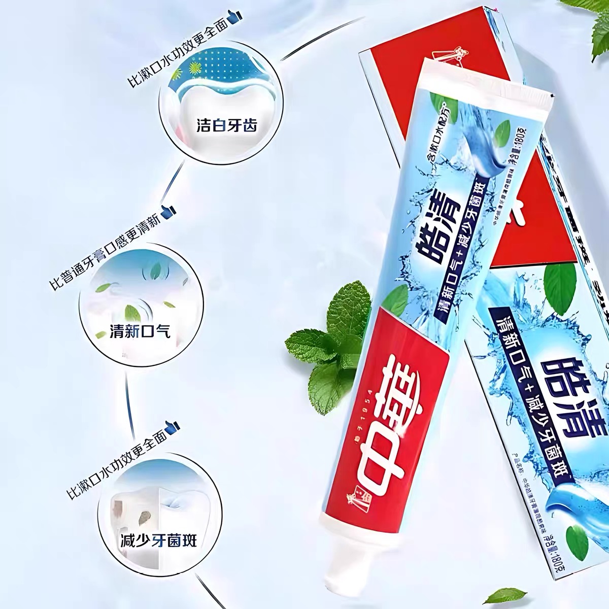 中华皓清牙膏薄荷酷爽味含漱口水配方180克一支装