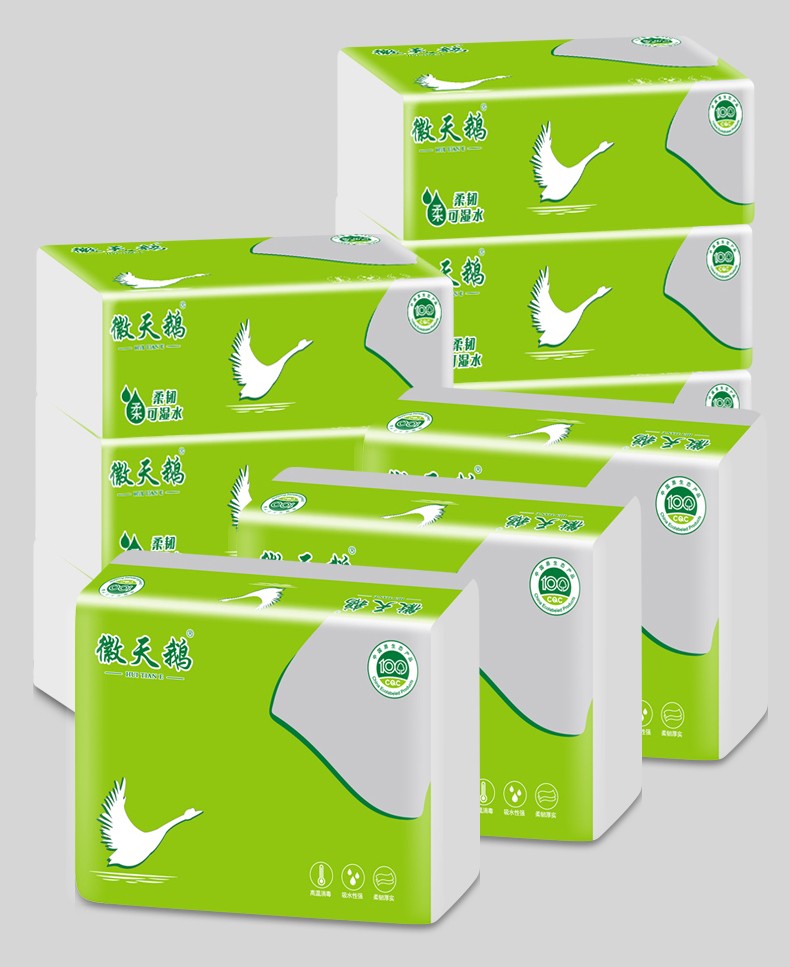徽天鹅绿色独立彩包方块纸卫生间专用包8包一箱(送2包K3抽纸)